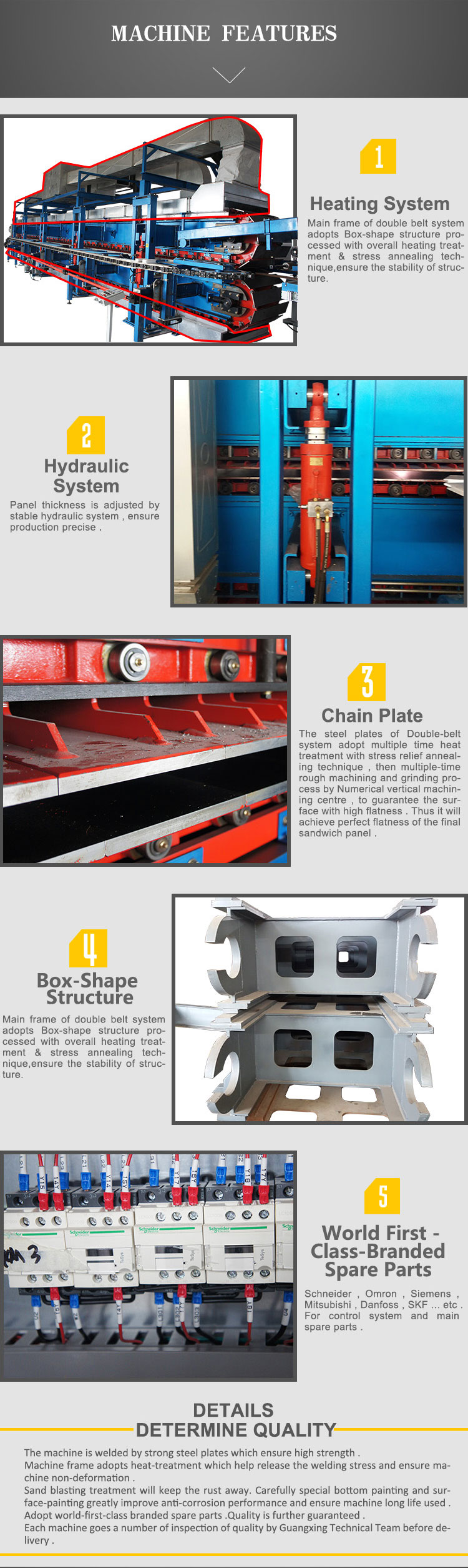 Special double belt conveyor design ensure flat surface,even thickness and anti-deformation of the sandwich panel.